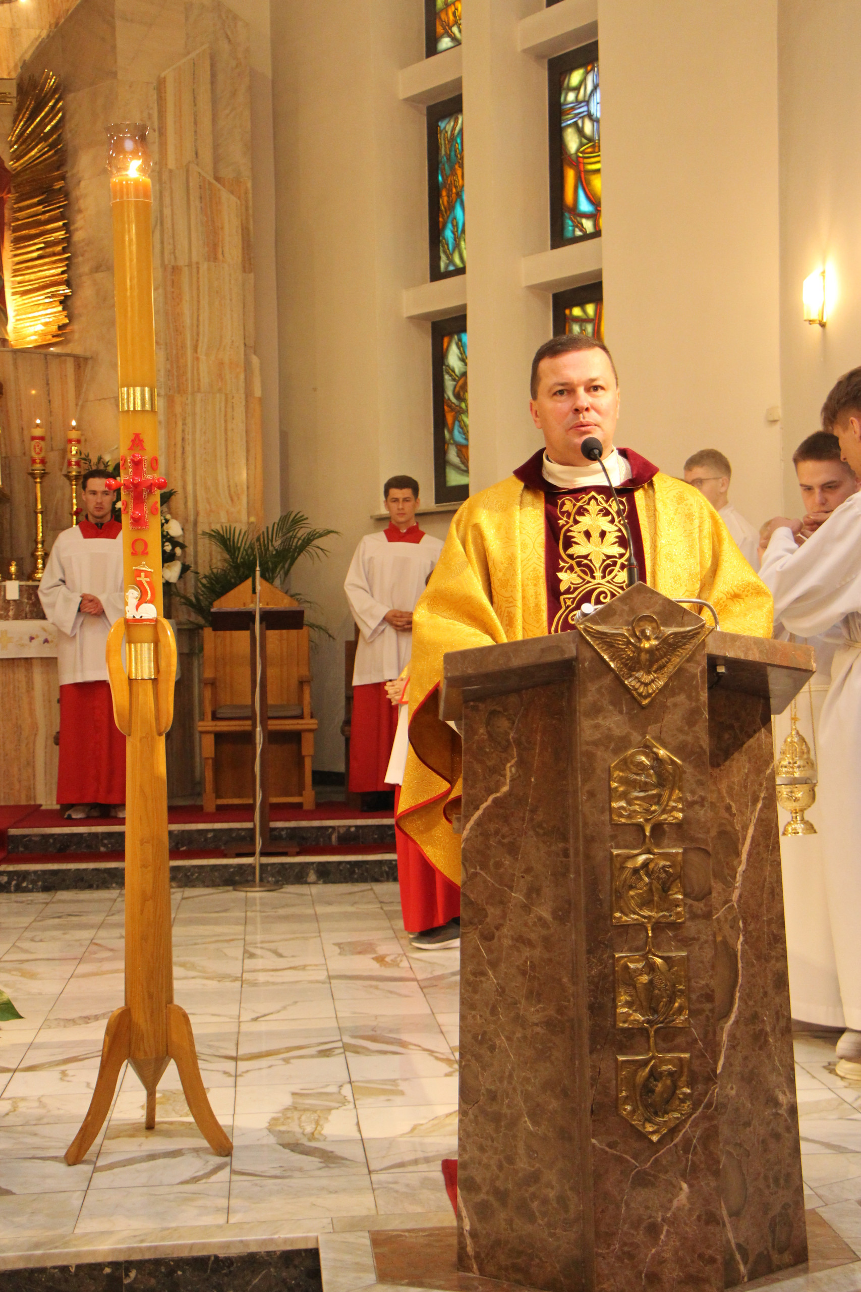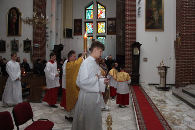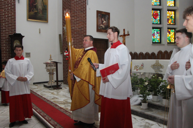 W Wielką Sobotę trwaliśmy przy Grobie Pańskim, rozważając tajemnicę spoczynku Chrystusa w grobie i oczekując chwały Zmartwychwstania. Modlitwa, adoracja Najświętszego Sakramentu oraz błogosławieństwo pokarmów były dla naszej wspólnoty czasem skupienia i duchowego przygotowania do przeżywania Świąt Paschalnych. Niech to święte oczekiwanie prowadzi nas ku radości poranka Zmartwychwstania.